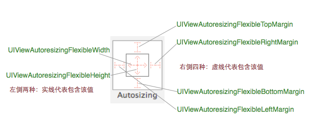 - UIViewAutoresizingFlexibleWidth 自动调整view的宽,保证与superView的左右边距不变