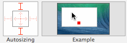 我们在一个xib文件中,取消勾选autolayout,(默认使用autolayout时,autoresizing看不到)。那么我们可以在布局那一栏看到如何设置autoresizing.