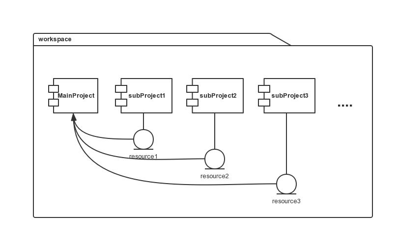 在工程拆分的架构中,一般会有一个主工程(上图中的MainProject), 很多个子工程(上图中的subProject). 它们可能是在一个workspace中,也可能作为subProject等. 但是一般子工程的代码都会打包为静态库.a或framework来使用.