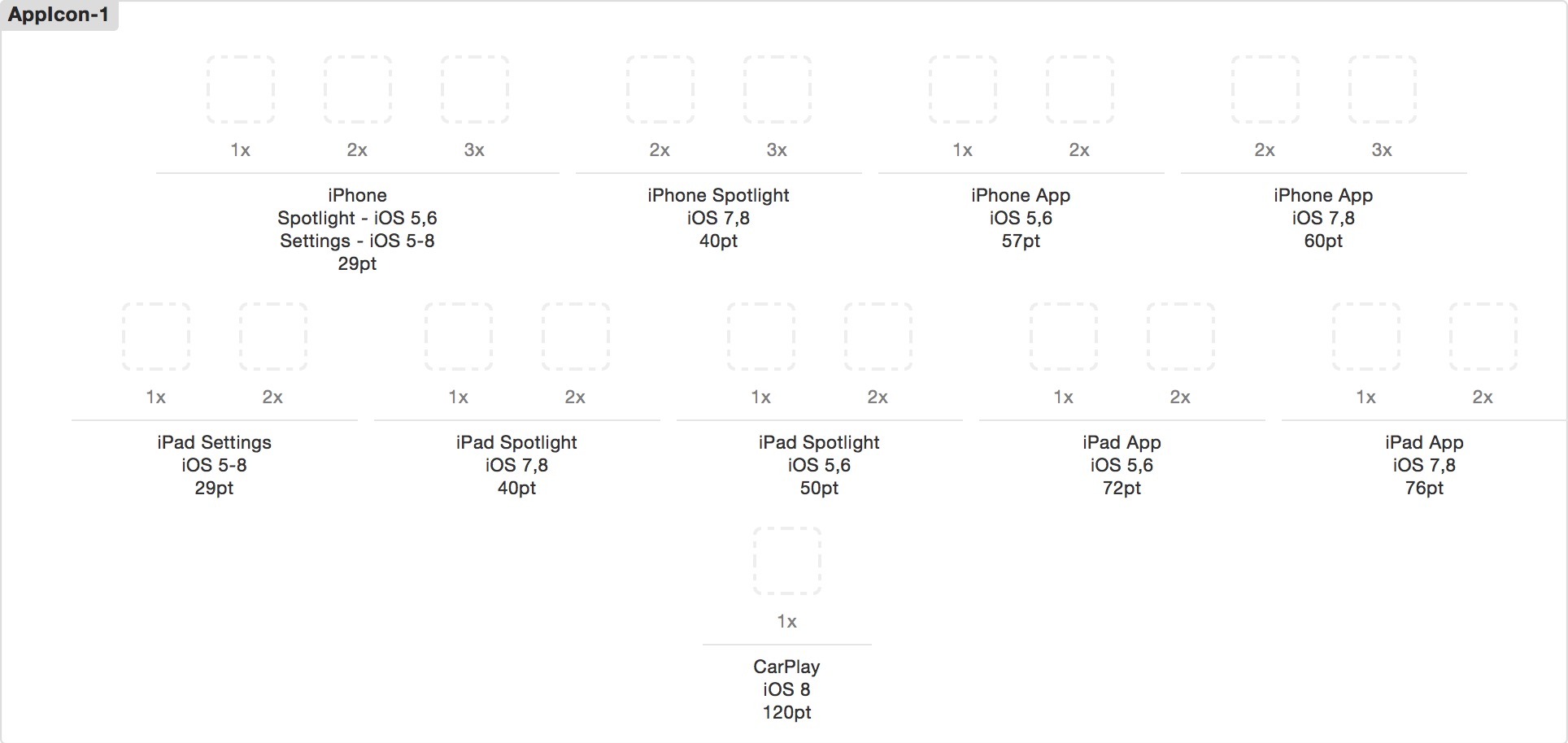 随着IOS的不断升级,我们需要app的icon的尺寸也越来越多,如下: